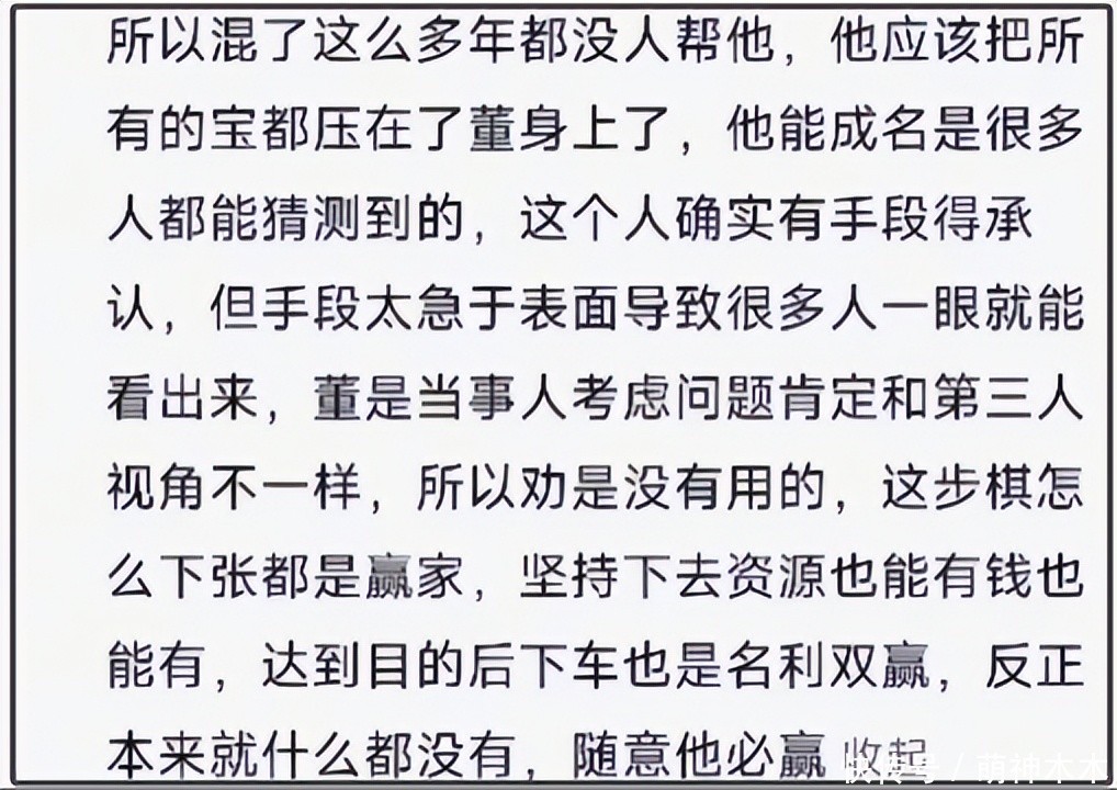 张维伊如今堕落到全网嘲的场面跟其本东说念主言行息息有关,婚前丁克婚后要连接血统,作念事不大气爱卖惨,既要又要。除了网友吐槽外,还有与他打过交说念确当地东说念主吐槽,称张维伊只怕把统统的宝齐押在了董璇身上,董璇有盲区光劝没用,最终的恶果即是张维伊赢。
