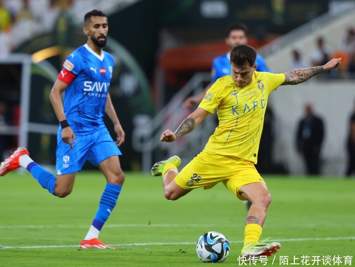 比赛刚刚开打第7分钟,新科联赛冠军利雅得眉月就取得了黑甜乡般的开局,马尔科姆右路送出45°传中,埋伏在后点的米特洛维奇插上,在无东说念主盯防的情况下头槌破门,匡助球队早早就建造起了1-0的跳动。